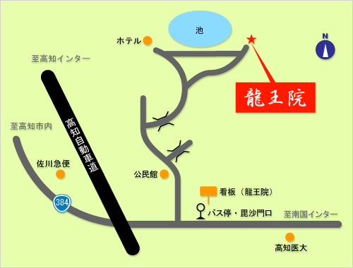 JR土讃本線高知駅からバス20分、毘沙門口下車、徒歩10分