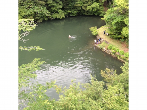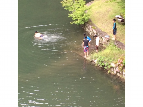 近所の子供が、滝に水遊びに来てました。雨上がりで、少し肌寒いですが、元気に泳いでました。私自身も子供の時の記憶を思い出しました。