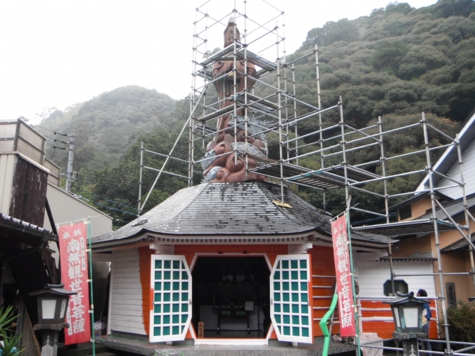 最近は冬の風が吹き境内の紅葉も最高潮です。皆さん、体調管理はされてますでしょうか?インフルエンザなどもこれから流行りだしますので手洗いやうがいなどの予防もしっかりされてください。さて、本堂周辺にに続き白龍観世音菩薩像及び開山堂のお色直しをしております。白龍観音さんにおきましては、三十年ぶりの修復お色直しになります。お正月前にはきれいなお姿をお見せできるかと思います。修復中は拝見しにくいですがもうしばらくお待ちください。年末の31日の除夜祭には是非御参拝ください。合掌